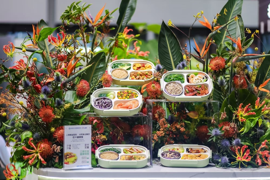 本届进博会上,上海康养集团携手上海交通大学医学院附属瑞金医院(以下简称瑞金医院),首次呈现双方以“健康生活方式互动报告”系统构建的健康管理新场景,并展示以“江南饮食”为理论核心推出的600kcal与800kcal两档能量、共20款差异化选项的“瑞金光明控卡健康餐”模型,共同定义科学膳食新风尚。工作人员通过“康养之书”造型,热情地向每一位来访者介绍着公司在养老服务领域的创新理念和实践成果,从“医”的全周期健康管理到“康”的康乐延缓机能,从“养”的亲伴怡养体验到“护”的精准暖心守护,再到“膳”的全链品质膳食,每个环节、每处细节都彰显着上海康养集团对长者晚年生活的关怀与用心。