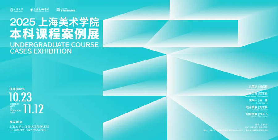 展览由上海美术学院策划推出,旨在通过“以展促教、以展促评”的方式,系统梳理并展示学院在课程建设、教学改革与人才培养方面的探索成果。展览特别构建“18+4+4”课程矩阵,涵盖18门院内特色课程,覆盖17个本科专业方向;4门虚拟仿真课程,涉及设计与建筑类专业;以及4门来自中央美术学院、清华大学美术学院、中国美术学院和上海科技大学创意与艺术学院的校外特邀课程,展现跨校共建、协同创新的策展理念。