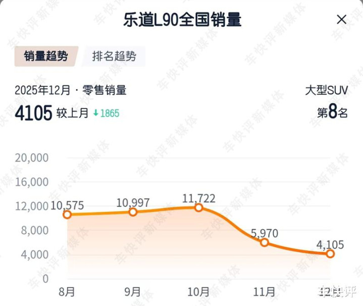 这边全新蔚来ES8一路高歌猛进,而那边乐道L90却显得有些黯然失色了。在去年8、9、10连续三个月销量破万后,11月和12月乐道L90销量突然骤降。11月卖了5970辆车,12月更是降至4015辆。