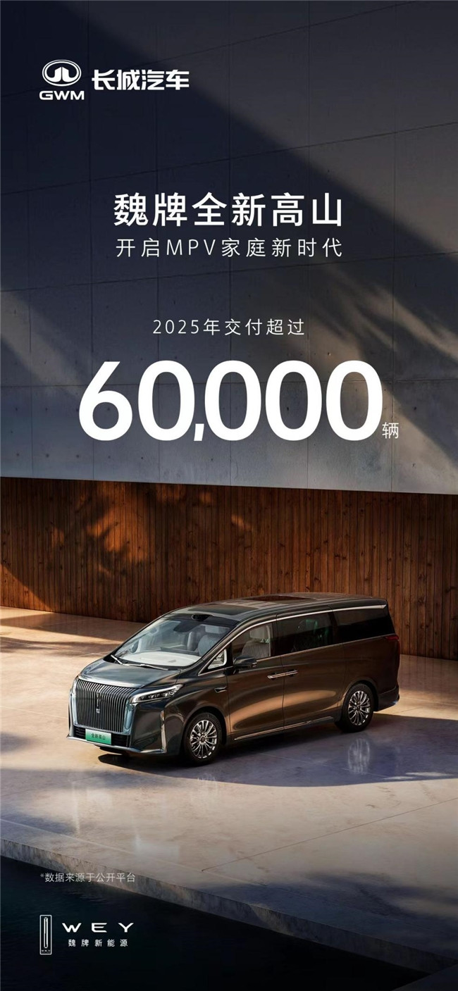 在 2025 年的 MPV 市场赛道上,魏牌高山无疑是最耀眼的明星车型。凭借 12 月单月销量冠军与 7-12 月半年销量总冠军的 “双冠” 辉煌战绩,它不仅延续了连续三月销量破万的火爆市场态势,更完成了从 “惊艳一时的市场黑马” 到 “引领行业的领航者” 的华丽蜕变,以绝对的产品实力与市场号召力引领着 MPV 市场的结构性变革。这一成绩的背后,既是魏牌品牌向上战略的成功落地,更是中国自主品牌在高端 MPV 领域实现的一次具有里程碑意义的历史性突破。